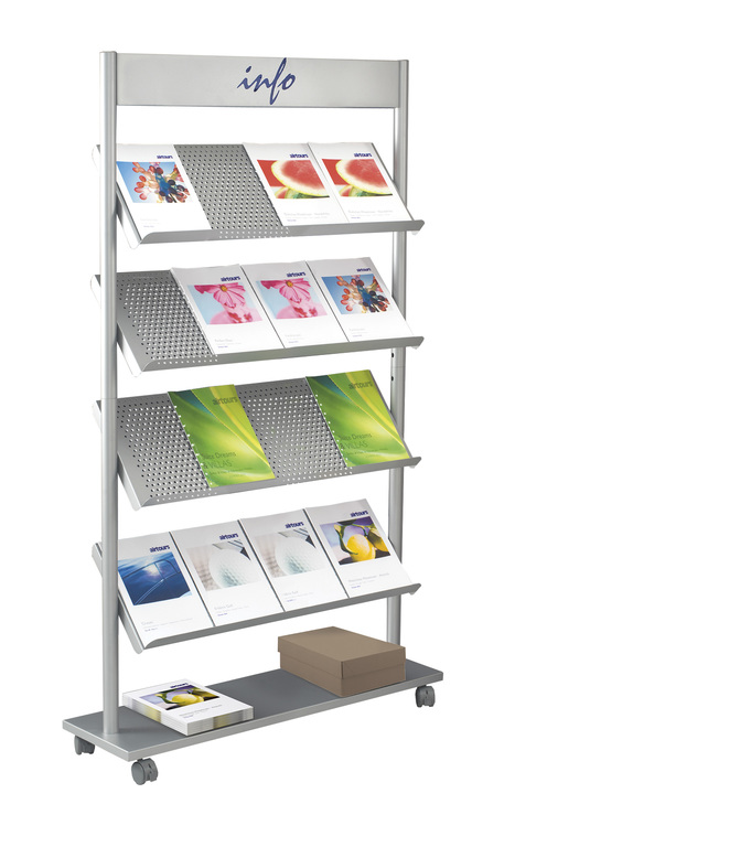 Das klassische Prospektregal bietet viel Platz für Prospekte und Informationen.