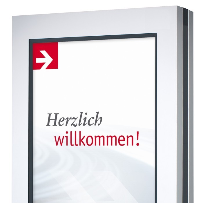 wo er sich äußerst vielseitig einsetzen lässt, etwa als Begrüßungstafel, für Veranstaltungshinweise und Touristeniformationen, für Mitarbeiterinformationen oder Messepräsentationen.
