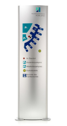 Der moderne, beidseitige Pylon C im ansprechenden gewölbten Bogendesign setzt klare Akzente für ein individuelles Erscheinungsbild. Der Pylon ist in jeder RAL-Farbe und in silber eloxiert erhältlich. Auch die Formate sind frei wählbar, jede von den Standardmaßen abweichende Größe lässt sich realisieren. Der Pylon eignet sich sowohl für den Innen- als auch für den Außenbereich. Gerne nehmen wir die Beschriftung nach Ihren Angaben vor.