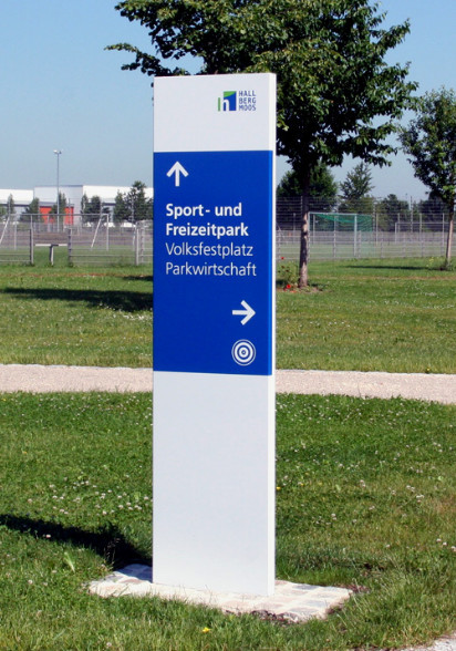 Grundsätzlich ist der Pylon silber eloxiert. Auf Wunsch kann er in jeder gewünschten RAL-Farbe eloxiert werden. Einen großen Gestaltungsspielraum bieten farbige Schriftzüge, Firmenlogos, Grafiken etc. Zur Beschriftung nach Ihren Angaben benötigen wir Ihre druckfähige Vorlage.