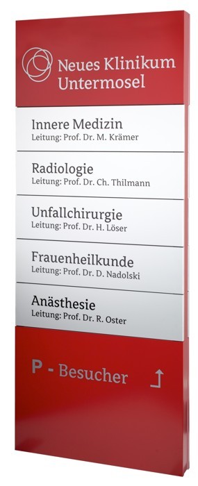 Eine einheitliche und harmonische Gesamtbeschilderung wird in Kombination mit dem Wegweiser S, Fahnenschild S und Hängeschild S, der fest montiert oder mobil aufgestellt werden kann, erzielt.