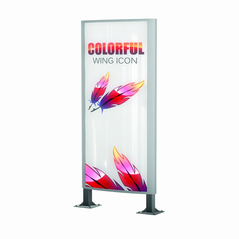 Die eleganten Consystec Pylone der „Hera“-Serie sind beidseitig LED-beleuchtet. Die abgerundeten Seitenprofile bestehen aus Aluminium und sind entweder silber eloxiert oder nach Wunsch lackiert. Die Decken- und Bodenstücke sind aus feuerverzinktem und pulverbeschichtetem Stahl gefertigt. Die Fronten werden mit einer 3 bzw. 4 mm starken, opalweißen und gewölbten Acrylplatte geschlossen. Die Pylone können wahlweise mit feuerverzinkten Füßen auf ein Fundament montiert oder mit entsprechenden Montageprofilen direkt einbetoniert werden. Es werden Höhen von 1.500 bis 4.000 mm sowie vier Breiten von 1.017 bis 1.775 mm als Standardformate angeboten. Sonderformate können auf Anfrage jederzeit gefertigt werden.