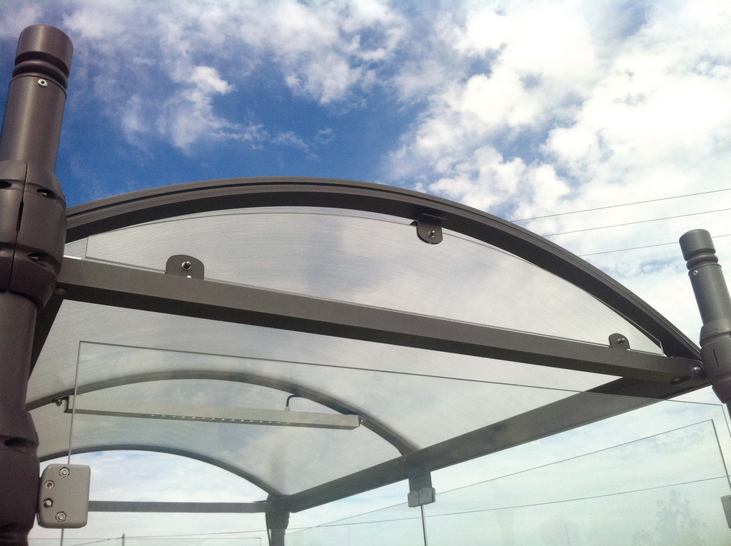 - Bedachung: Gewölbe aus 6 mm starken Stegplatten aus UV-beständigem, durchsichtigem Polycarbonat.