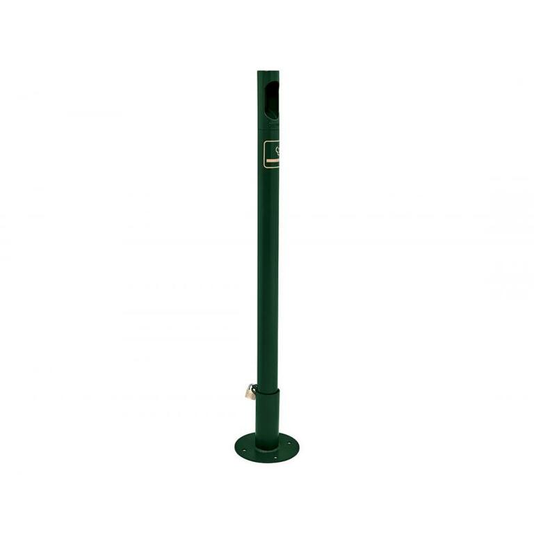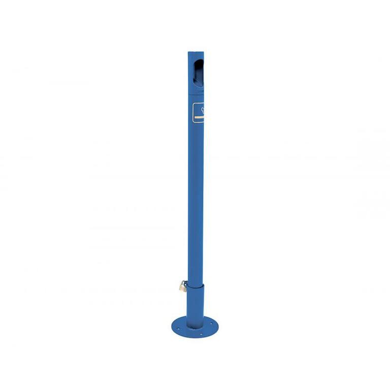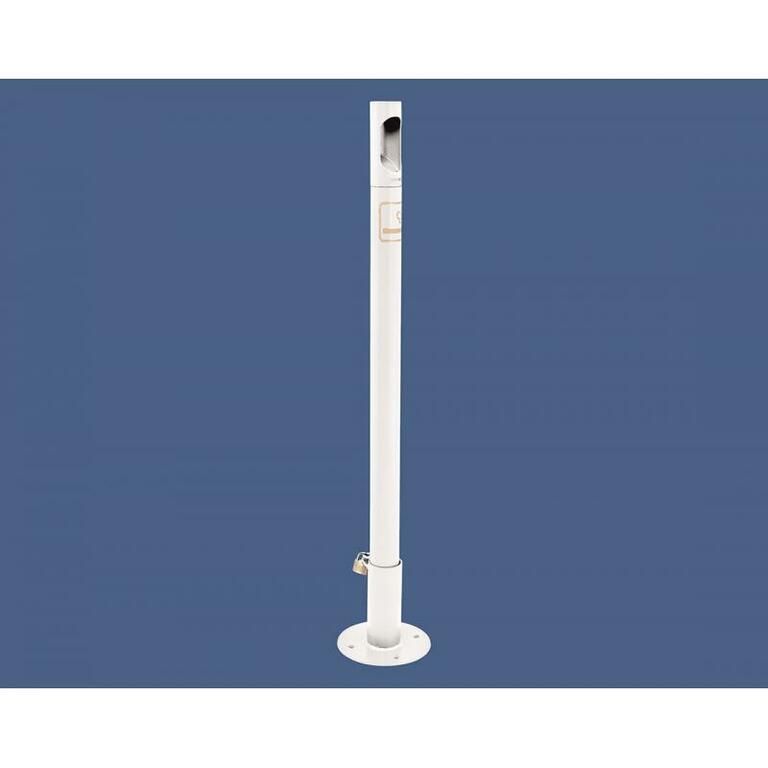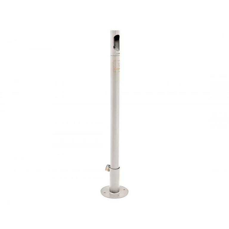 - Auf Bodenplattenhülse, zur Aufstellung oder Befestigung am Boden, Verriegelung mit einem Vorhängeschloss.