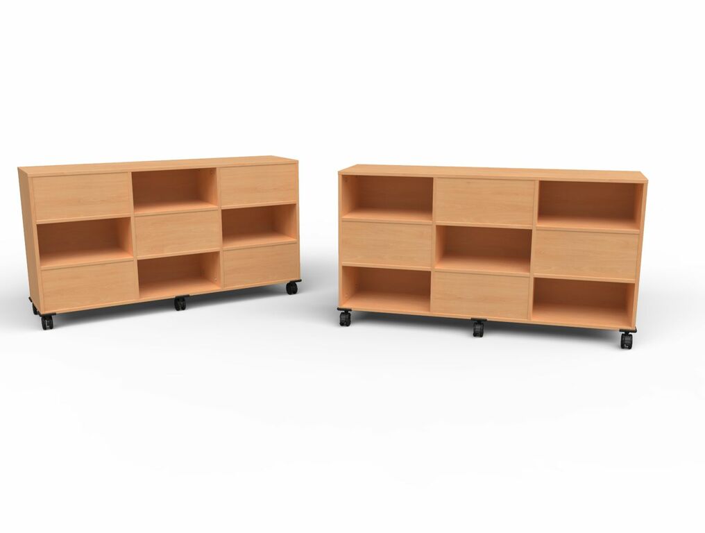 | Fächer | 4 offene Fächer 5 Fächer mit Sichtrückwand | 4 offene Fächer 5 Fächer mit Sichtrückwand | 4 offene Fächer 5 Fächer mit Sichtrückwand | 5 offene Fächer 4 Fächer mit Sichtrückwand 6 Rollen, 2 davon feststellbar |