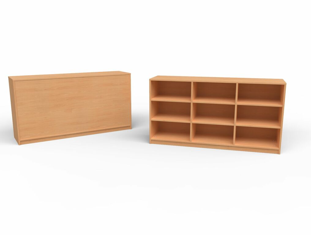 - Standard. VORDERSEITE: Offen, 2 trennwände, 3x2 Einlegeböden. RÜCKSEITE: Sichtrückwand geschlossen.