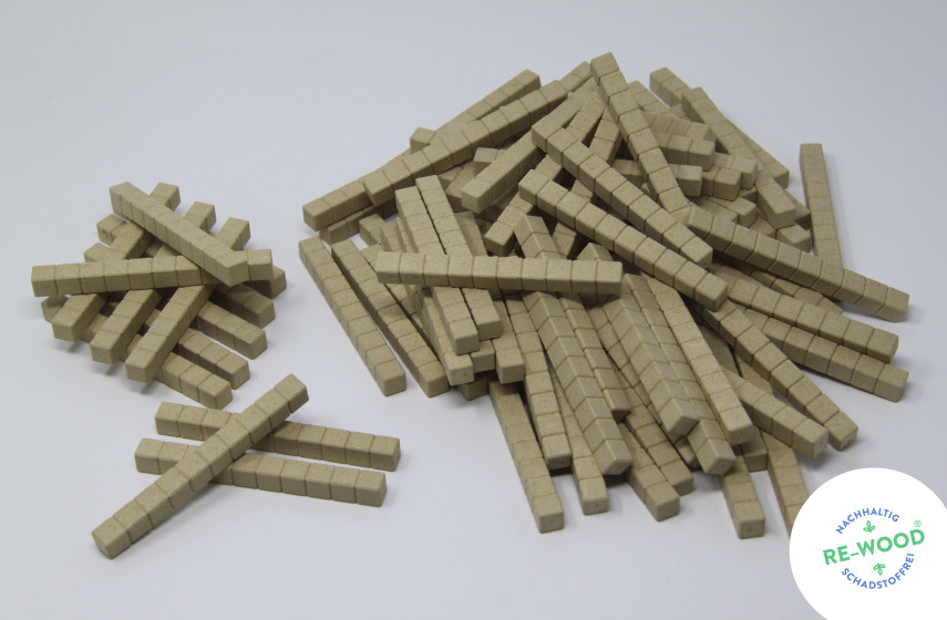 Nach 10-jähriger Entwicklung, in Zusammenarbeit mit namhaften-Forschungsinstituten, werden seit 2 Jahren immer mehr unserer didaktischen Lehr- und Lernmittel anstelle von Kunststoff in RE-Wood hergestellt.