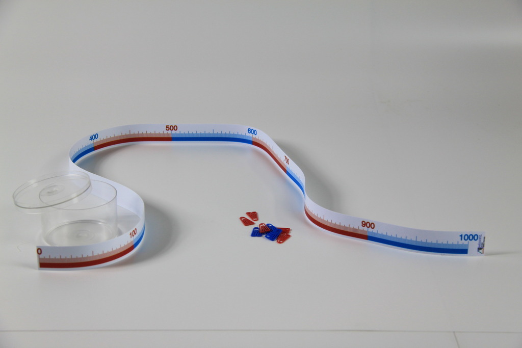 Die einzelnen Bänder bestehen aus einer reißfesten und sehr widerstandsfähigen Kunststofffolie (Breite jeweils 9 cm). Diese werden gerollt in einer Kunststoffdose mit Deckel geliefert. Bei jedem Band befinden sich mehrere rote/blaue Markierungsklammern. Mit Hilfe von Klett-Klebepunkten kann man die Bänder auf einfachste Weise an der Klassenzimmerwand befestigen.