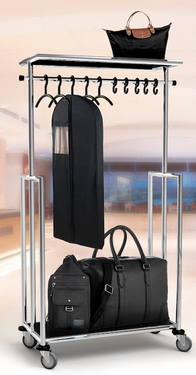 Der wendige Garderobenwagen aus verchromtem Stahl in stabiler und dauerhafter Konstruktion ist hervorragend für den professionellen Einsatz beispielsweise in Foyers, Hotels, Garderobenräumen touristischen Einrichungen und Empfangsräumen geeignet. Die Bestückung mit Kleiderhaken und/oder Kleiderbügeln ist in verschiedenen Variationen möglich.
