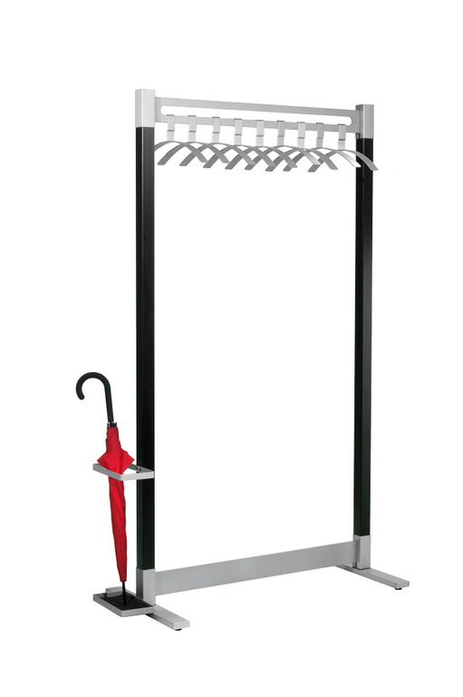- Ausstattbar mit Haken und/oder Kleiderbügeln sowie rechts, links oder beidseitig mit Schirmhaltergarnitur.