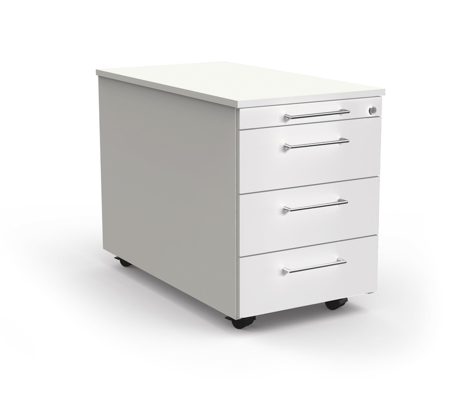Rollcontainer IV mit Zentralschloss, 80 cm tiefe weiß