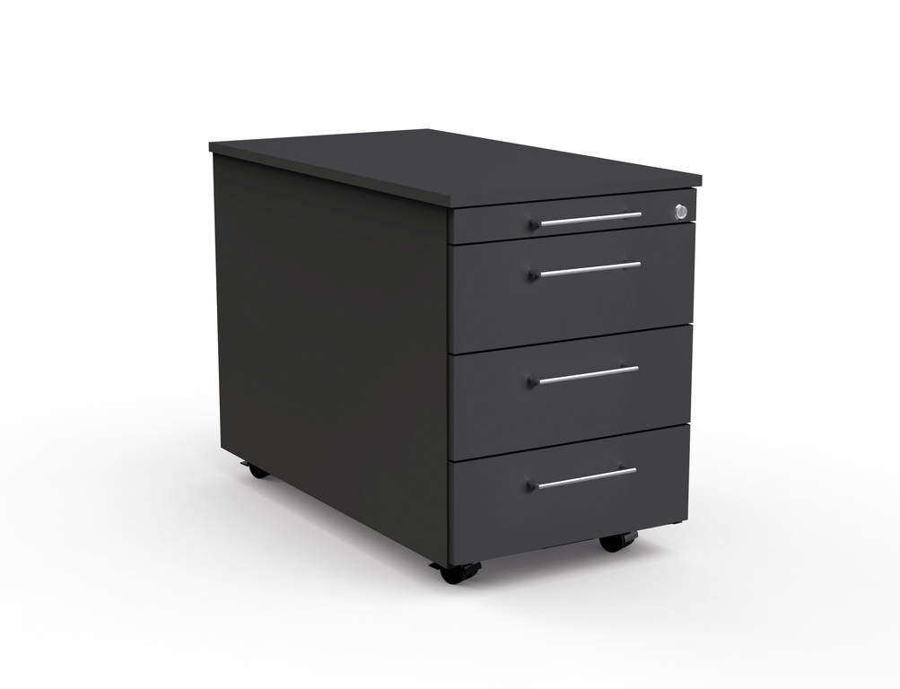 - Auszugssperren verhindern, dass der Rollcontainer nach vorne kippt. Es kann immer nur eine Schublade geöffnet werden.