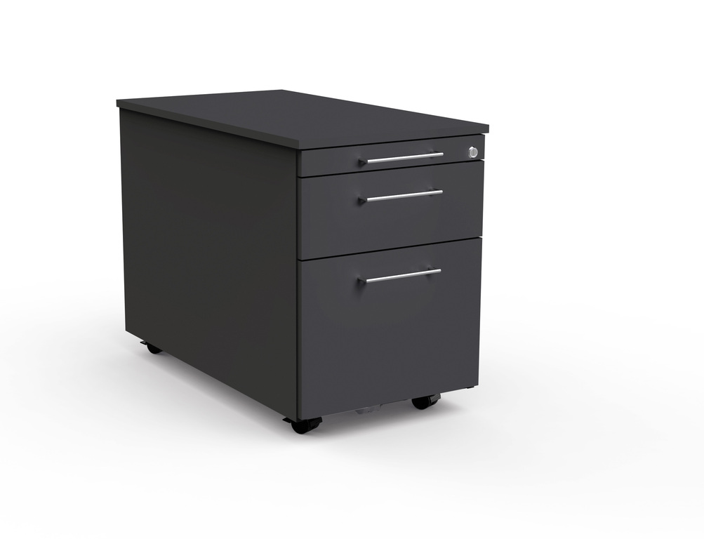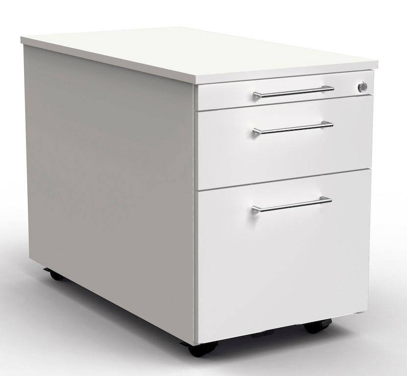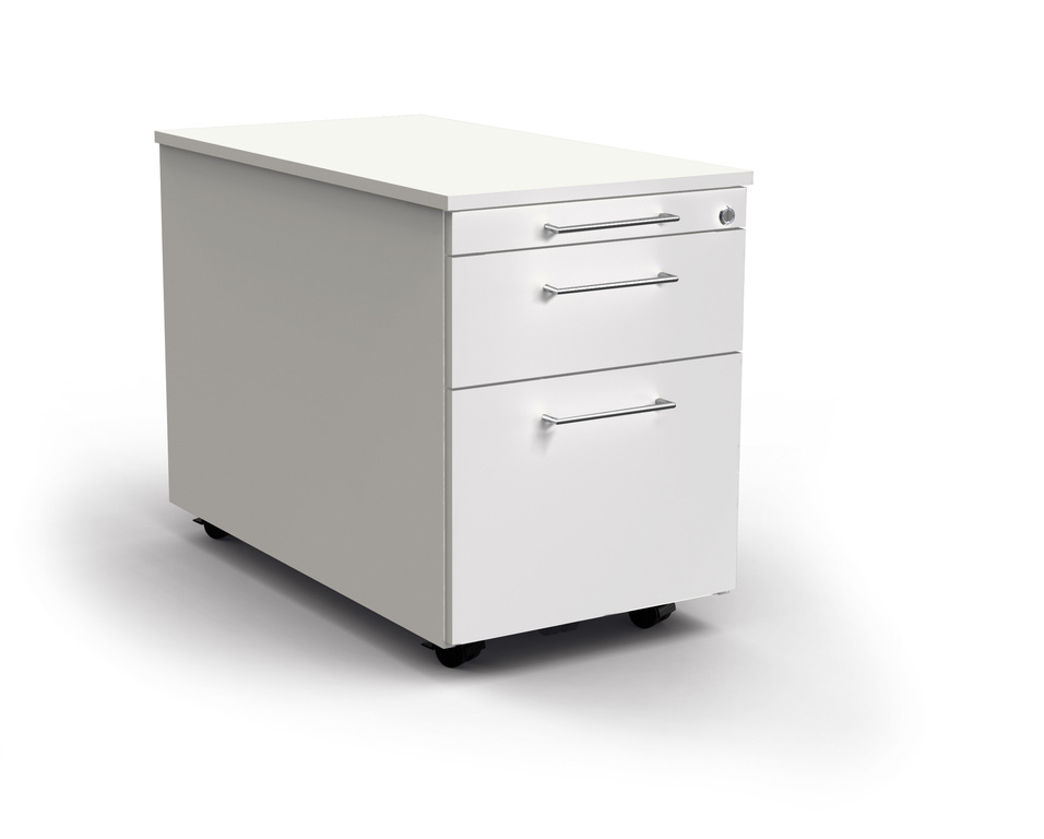 - Auszugssperren verhindern, dass der Rollcontainer nach vorne kippt. Es kann immer nur die Schublade oder der Hängeregistraturauszug geöffnet werden.