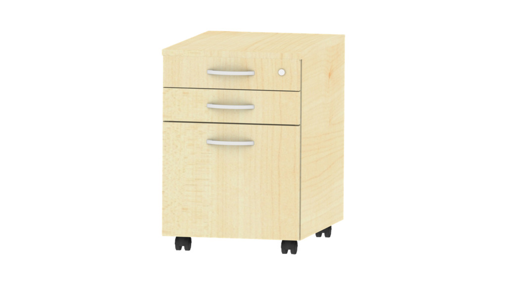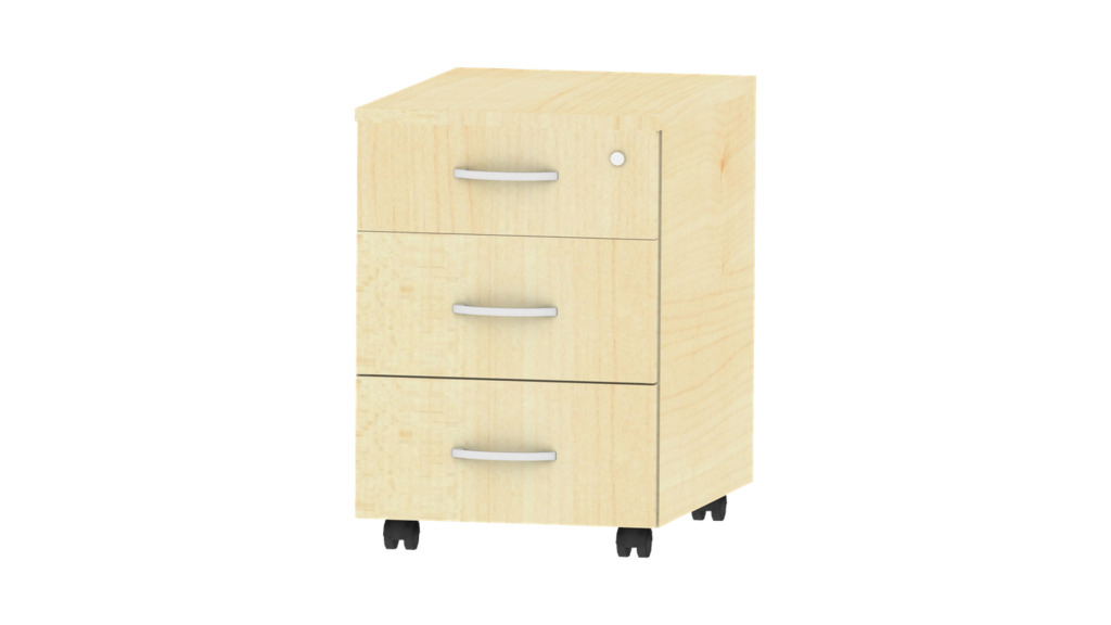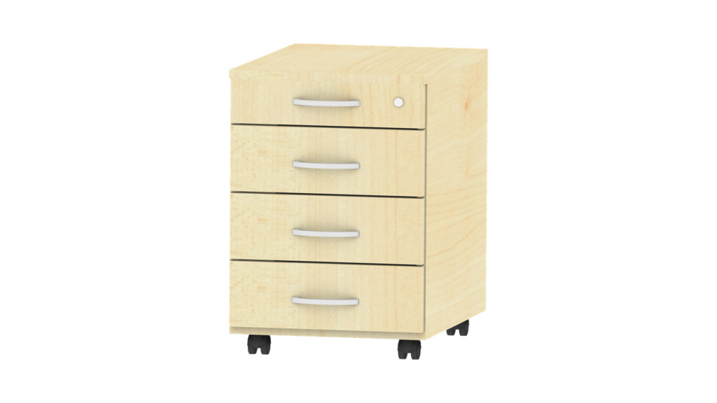 Unsere Rollcontainer auf 4 Rollen, mit leichtlaufenden Schubladen sind ist die perfekte Ergänzung zu unseren Schreibtischen.