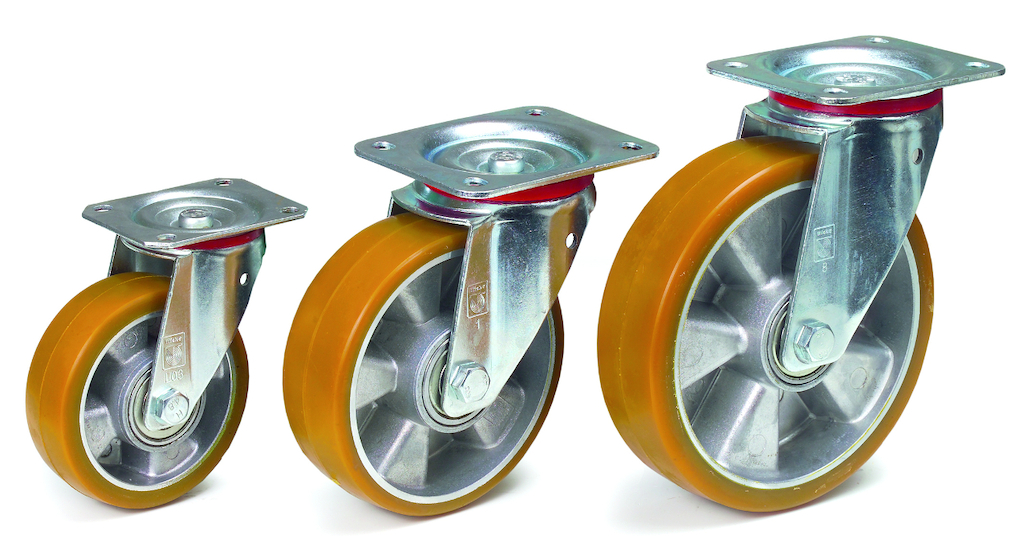 Besonders hochwertige und widerstandsfähige Räder für hohe Tragkräfte. Beständig gegen viele aggressive Medien. Da spurlos auch für empfindliche Böden geeignet. Hohe Lebensdauer.
