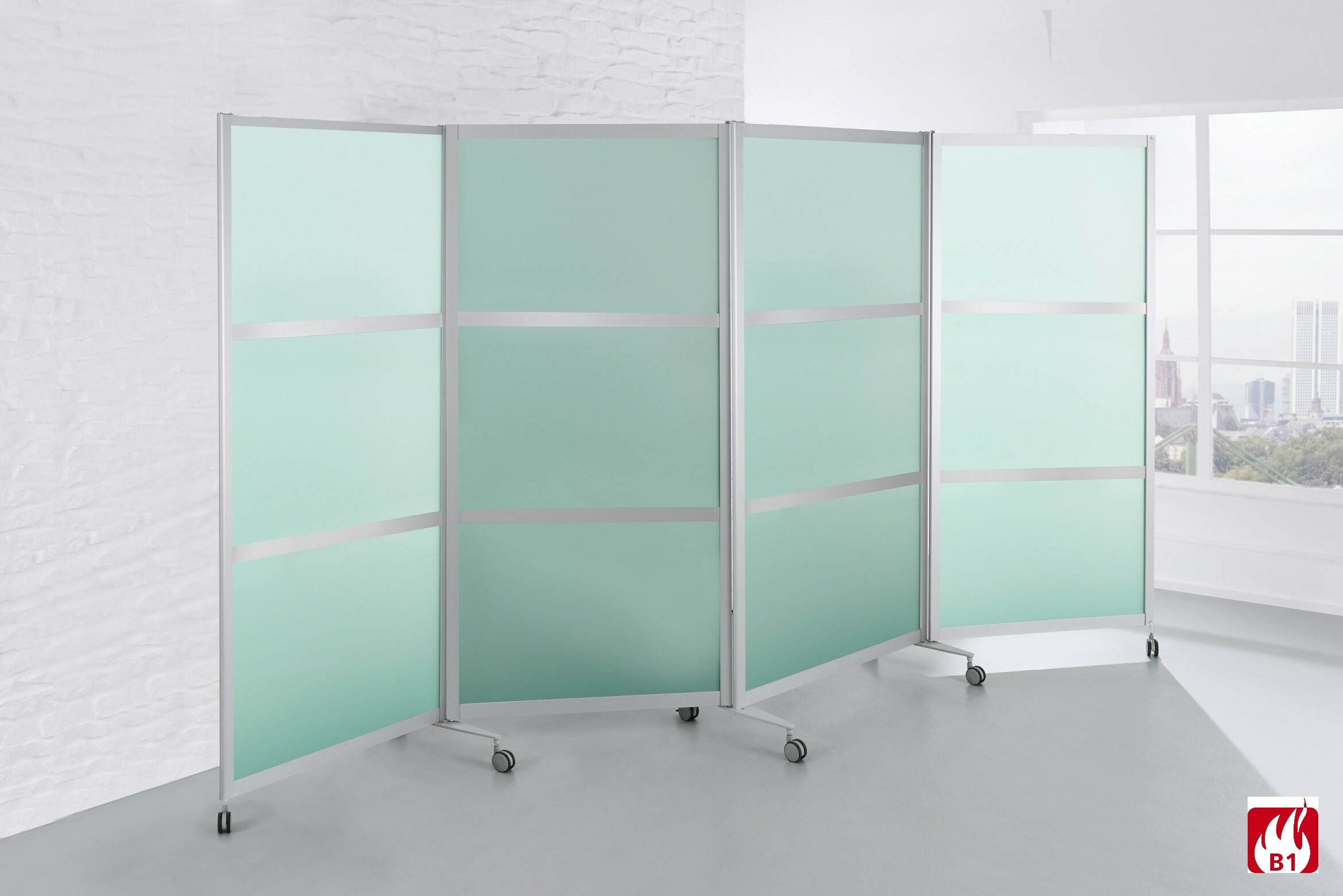 Unterschiedliche Bereiche und Räume stellen komplexe Anforderungen an den Brandschutz. Die Bauvorschriften verweisen dabei hinsichtlich des Brandschutzes auf die Einhaltung der DIN 4102. In dieser Norm ist das Brandverhalten von Baustoffen und Bauteilen geregelt. Da viele Möbel aus einem Materialmix bestehen, muss hier mit besonderer Sorgfalt hingeschaut werden. Im Einzelfall stimmen Sie sich bitte mit den zuständigen Behörden und der für Sie zuständigen Bauaufsicht vor Ort ab. Verschiedene Stellwände und Raumteiler unseres Programms SCREEN können in der Baustoffklasse B1 nach DIN 4102 ausgeführt werden. Diese Produkte gewährleisten dann die für viele Raumsituationen geforderten Schutzmaßnahmen.