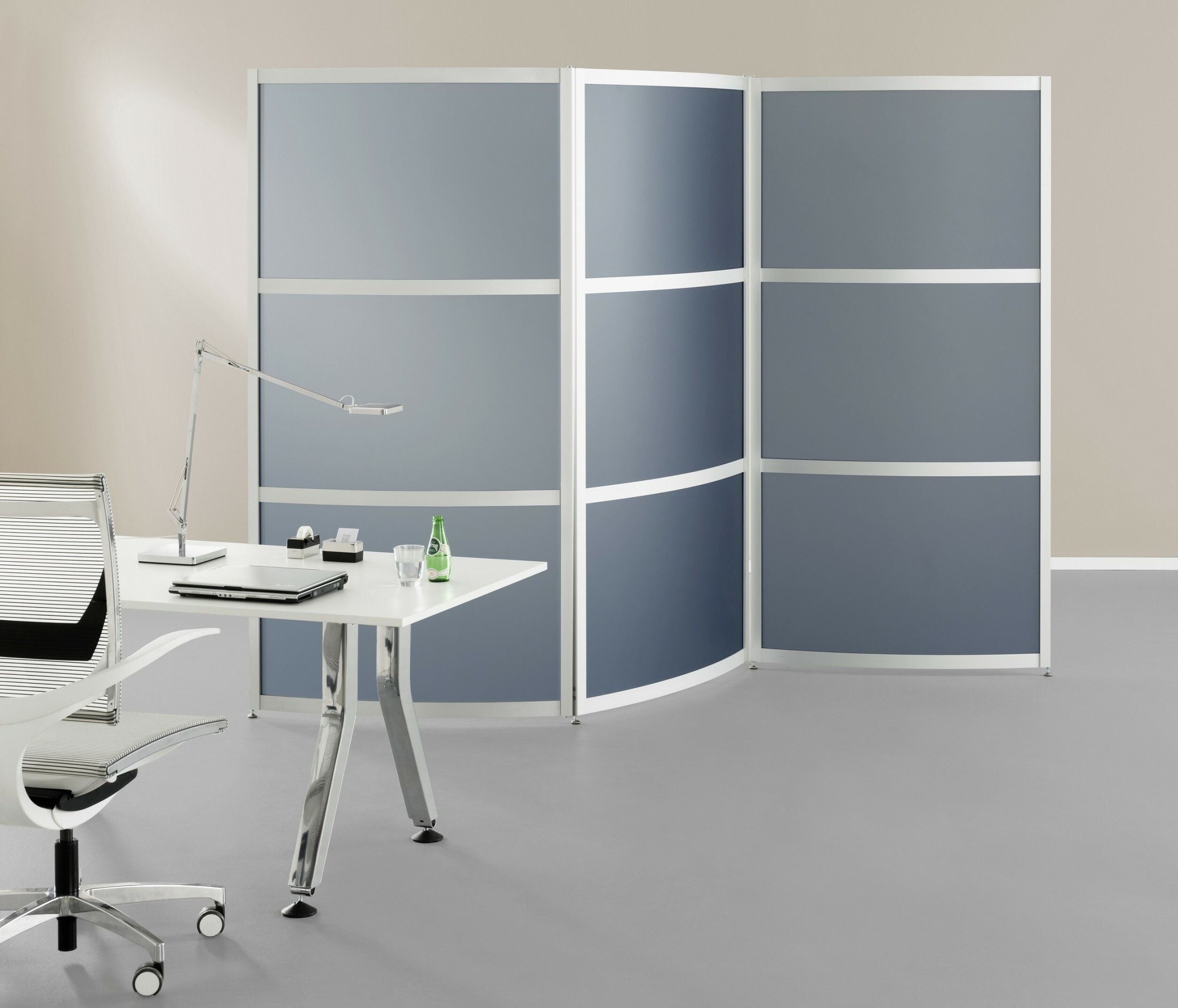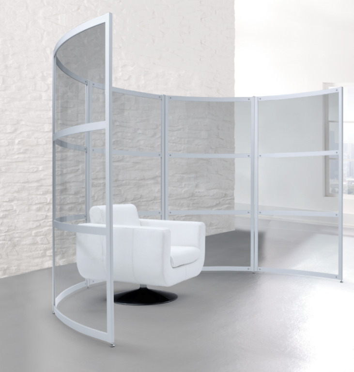 Mit unseren Stellwänden und Paravents schaffen Sie Raum im Raum, entspannen Sie Besprechungsflächen, separieren Sie Arbeitsbereiche, unterteilen Sie große Räume in maßvolle Größe, trennen Sie Nutzungsbereiche ab. Die Aluminiumstruktur unserer SCREEN Module ist leicht und trotzdem verwindungssteif und solide. Durch transluzente Materialien entsteht Transparenz. Diese Stellwände vermitteln Raumkultur ohne sich in den Vordergrund zu drängen. Mit gebogenen Elementen lassen sich organische und kreisrunde Formen schaffen. Das Beste daran ist jedoch, dass Sie jederzeit nach Lust und Laune alle Module miteinander kombinieren können. Einige SCREEN-Module sind mit Brandschutzausrüstung erhältlich, sodass auch in Räumen mit Brandschutz