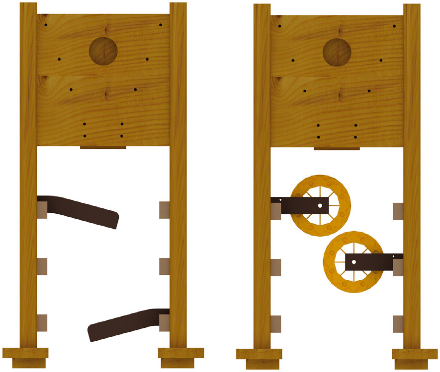 Turm 1: Sand-Depot, 3 Sandrutschen Turm 2: Sand-Depot, 2 Sandräder