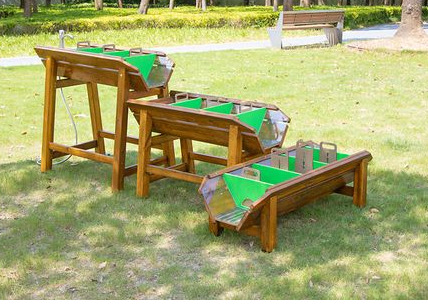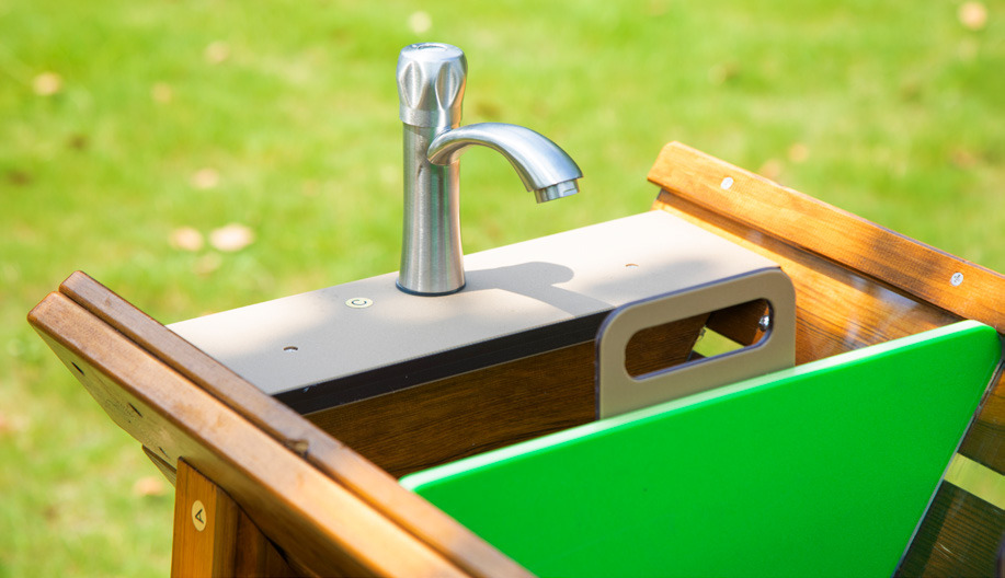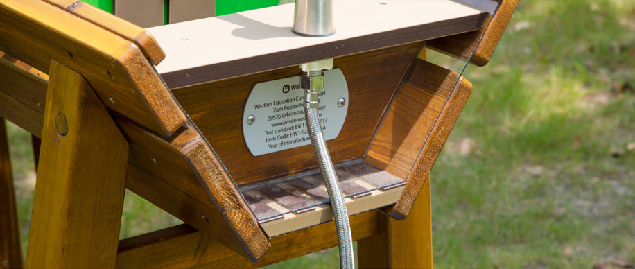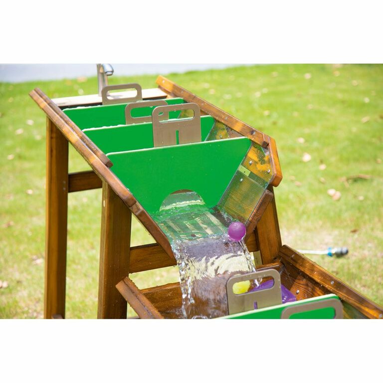 Diese Wasser-Matsch-Anlage, entwickelt und gebaut nach DIN EN 1176, lädt zum Experimentieren, Matschen und Spielen mit Wasser ein. Unterschiedlich große, herausnehmbare Wehre können zum Beispiel eine Schiffsschleuse oder Staudämme simulieren. Mit ihrer robusten Konstruktion aus Kiefernholz und einer natürlichen Holzöl-Lasur ist die Spielanlage nicht nur langlebig, sondern auch sicher für Kinder jeden Alters. Die abgerundeten Kanten und sorgfältig verarbeiteten Oberflächen minimieren das Verletzungsrisiko. Die Wehre sind herausnehmbar für eine einfache Reinigung und Wartung.