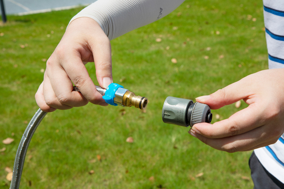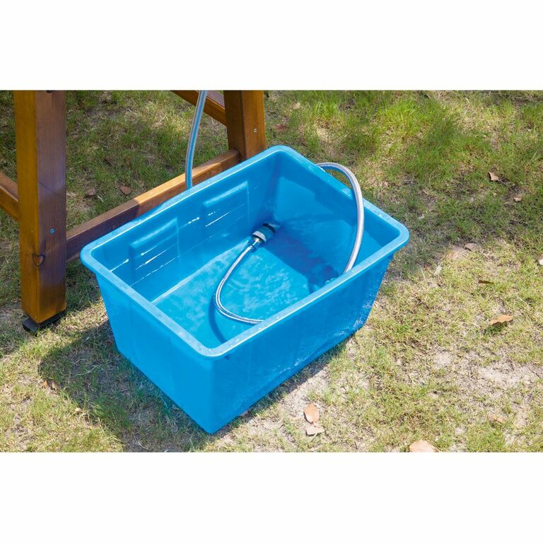 inklusive Wasserhahn aus Edelstahl (zum Anschließen mit Gewinde per Wasserschlauch an einen Wasseranschluss)