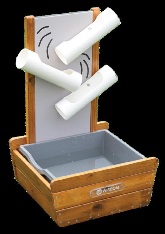 Abbildung zeigt: Wasserspiel "Regenrinne" kombiniert mit Wasserspiel "Wasserräder" und Wasserspiel "Regentropfen"