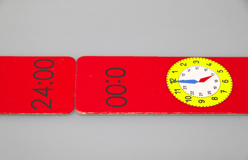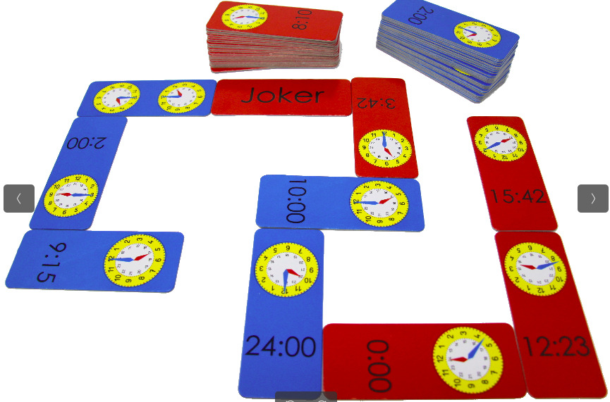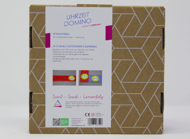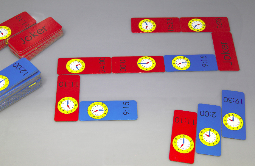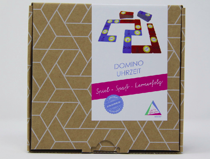 Domino - Uhrzeit, 60 Kärtchen, verpackt im Karton mit Anleitung.