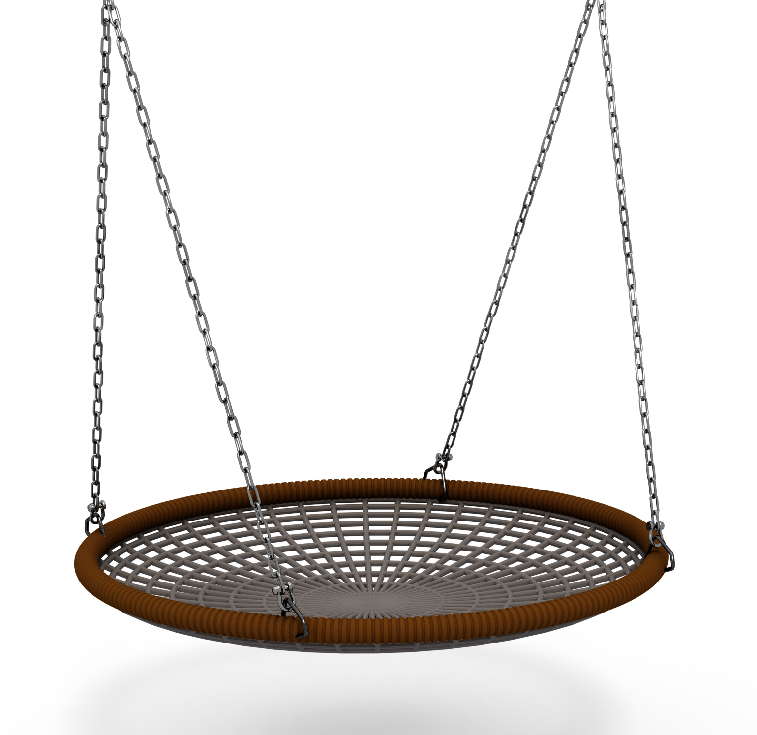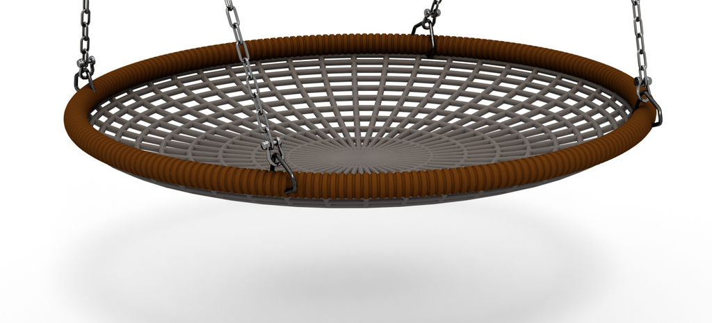 Schaukelkorb: Stahlring mit stoßdämpfender Seilummantelung, Sitzfläche aus verstärktem Seilnetz (Herkulesseil) /