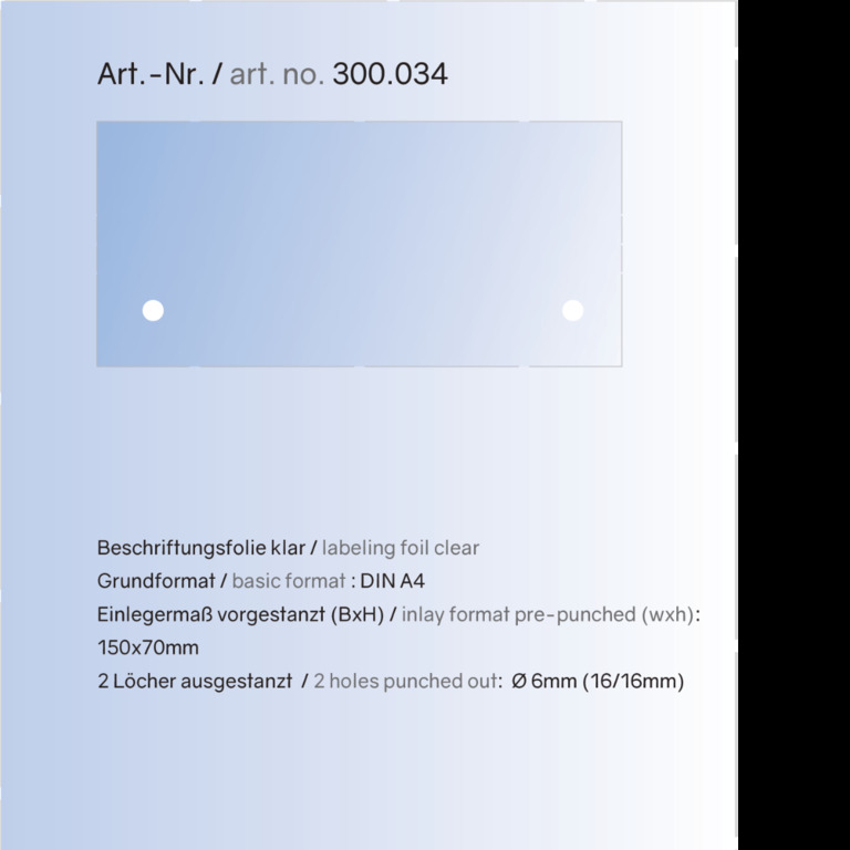 Laserfolien mit Perforation und 2 Bohrungen à 6 mm (klar und mattiert) passend zu Schildhaltern mit 13 mm Kopfdurchmesser der ClassicLine- sowie der UniversalLine-Serie.