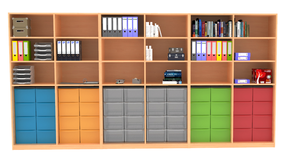 Hinweis: Der Materialschrank wird im zusammengebauten Zustand an die Verwendungsstelle geliefert.