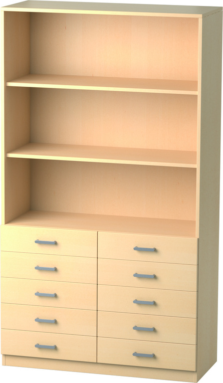 Unten: Mittelwand, 10 Schübe H 14 cm - Wandbefestigungsset: