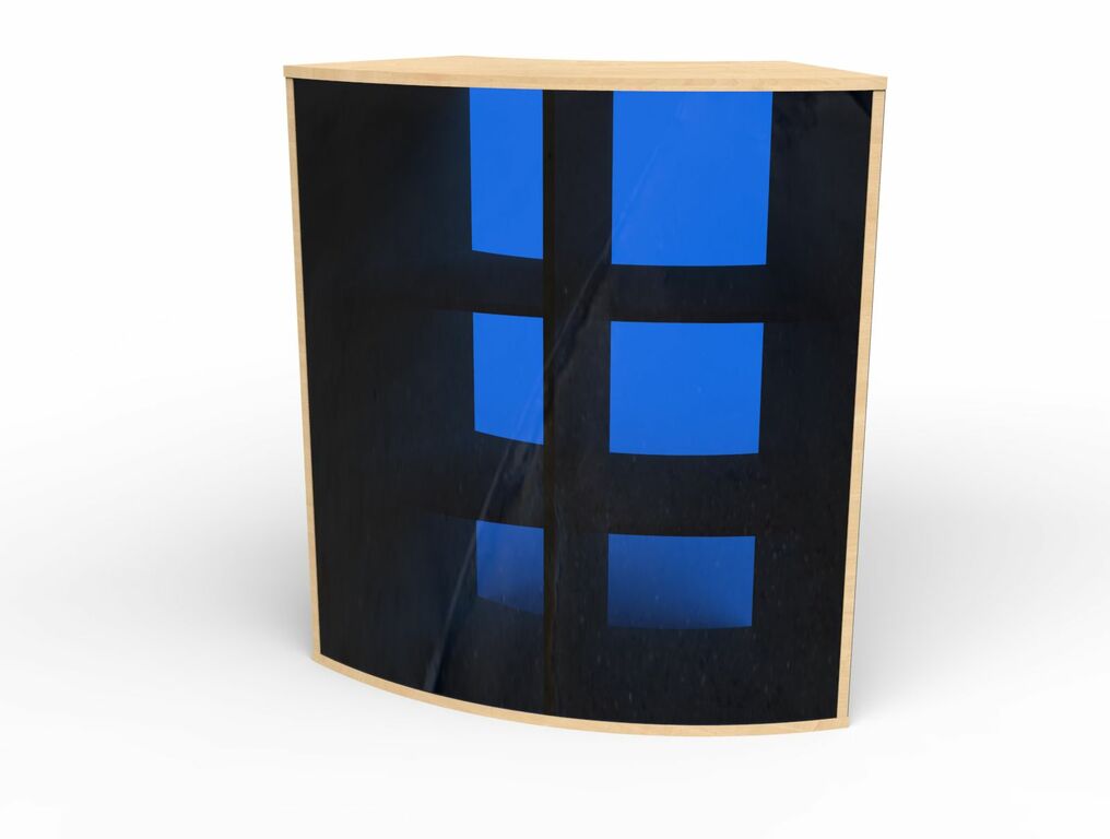 - Sechstelkreisschrank mit 4 offenen Fächern: Sechstelkreis Schrank Höhe 83,1 cm mit 4 offenen Fächern.