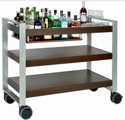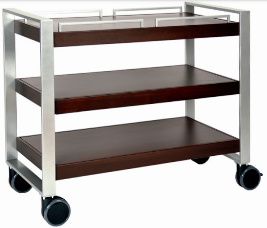 Servierwagen, mit Stahlrahmen und Massivholzleisten