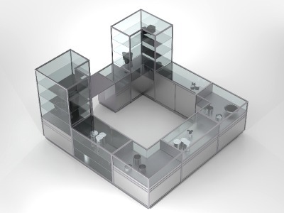 | 900 x 1000 x 1000 (600) mm | 90 mm | vollverglast, Drehtüren mit Zylinderschloss 2 Eckglasböden | Silber |