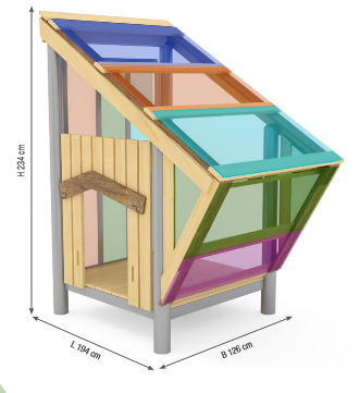 Dieses farbenfrohe und langlebige Spielhaus bietet Kindern eine sichere und kreative Umgebung zum Spielen und Entdecken. Dringt Licht durch die farbigen Fenster, lassen sich unterschiedliche Licht-Spektakel beobachten und das Spielen wird zu einem ganz besonderen Erlebnis. Die Sicherheit der Kinder steht an erster Stelle, aus diesem Grund wurde das Haus gemäß den Standards der DIN EN 1176 getestet und als sicher zertifiziert. Das Spielhaus ist die perfekte Ergänzung für den Außenbereich Ihrer Kindertagesstätte, die sorgfältige Verarbeitung und das hochwertige Material garantieren eine lange Lebensdauer.