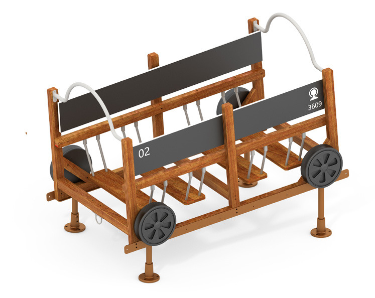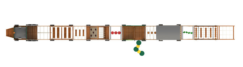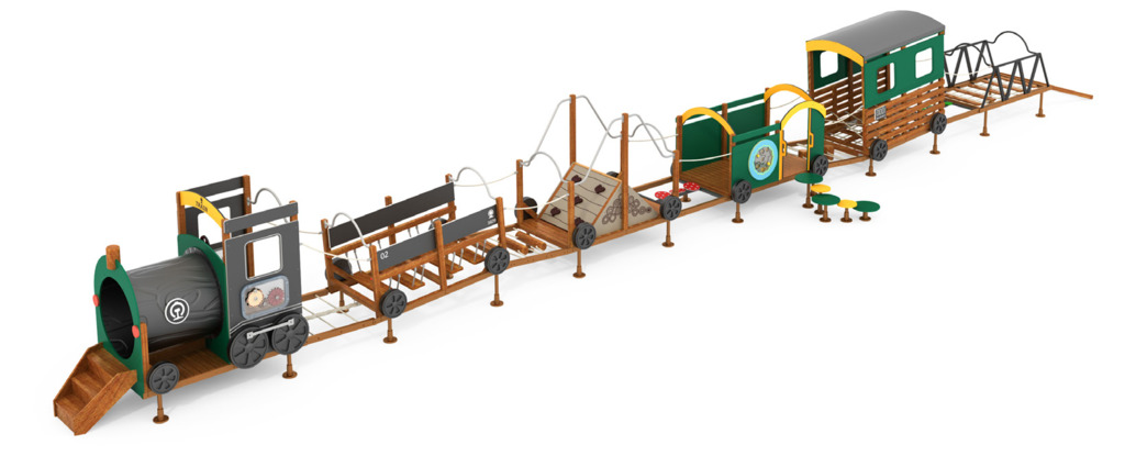 Diese Eisenbahn ist ein Highlight auf jedem Spielplatz. Mit den 12 Elementen entsteht eine Spiel- und Kletterlandschaft, die motorische Fähigkeiten fördert und gleichzeitig den Kindern ein einmaliges Spielerlebnis garantiert. Bei der Auswahl der Materialien wurde besonderer Wert auf lange Haltbarkeit gelegt. Neben anderen hochwertigen Materialien wurde für den Bau vor allem Tali-Holz verwendet - eine Holzart, die erfolgreich eingesetzt wird, wenn es gilt, hohen Belastungen und Witterungseinflüssen zu trotzen. Da die Sicherheit der Kinder an erster Stelle steht, wurden alle Elemente nach DIN EN 1176 entwickelt und gebaut.