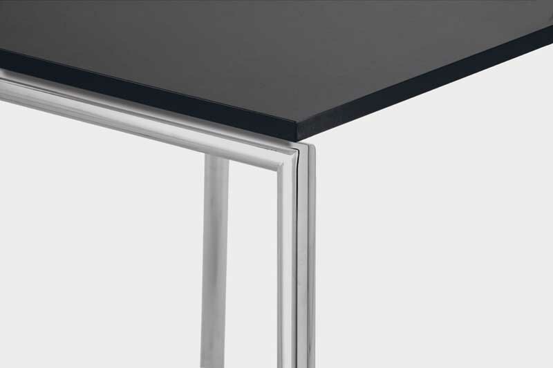 Modell 2055: Vierfußtisch, Tischbügel aus Rundstahlrohr Ø 30 x 2,0 mm, Zargen aus Vierkantrohr 30 x 30 x 2,0 mm, verchromt oder pulverbeschichtet.