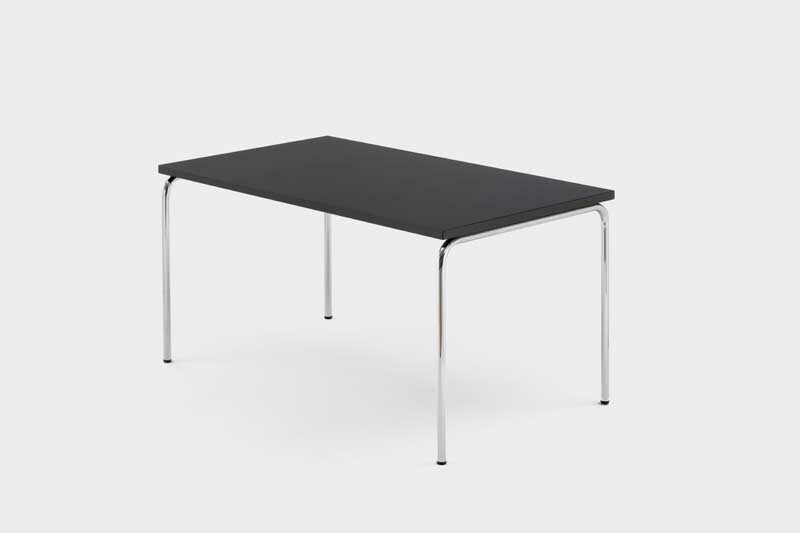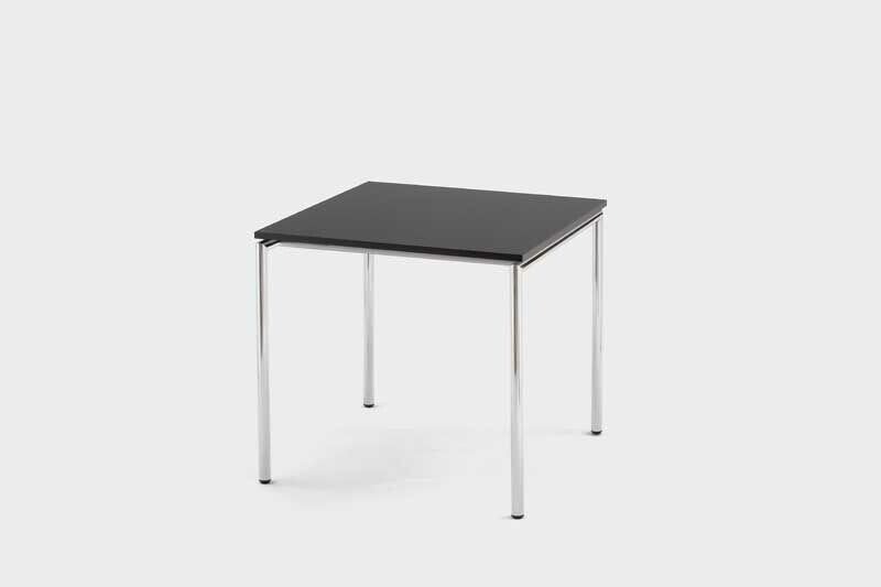 Modell 2054: Vierfußtisch, Tischbeine aus Rundstahlrohr Ø 40 x 2,0 mm mit Blechauslegern, verchromt oder pulverbeschichtet.