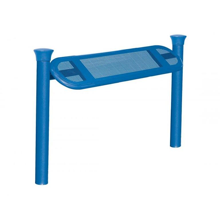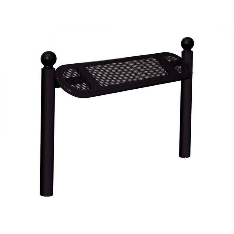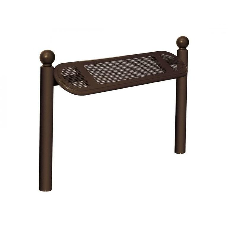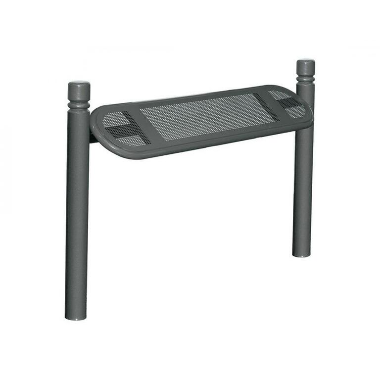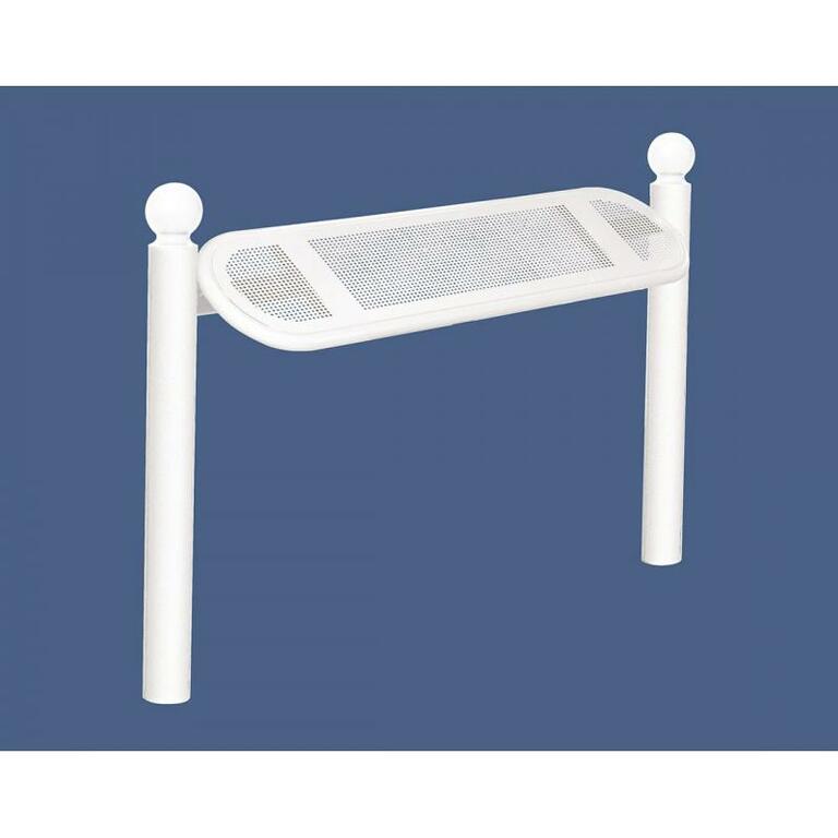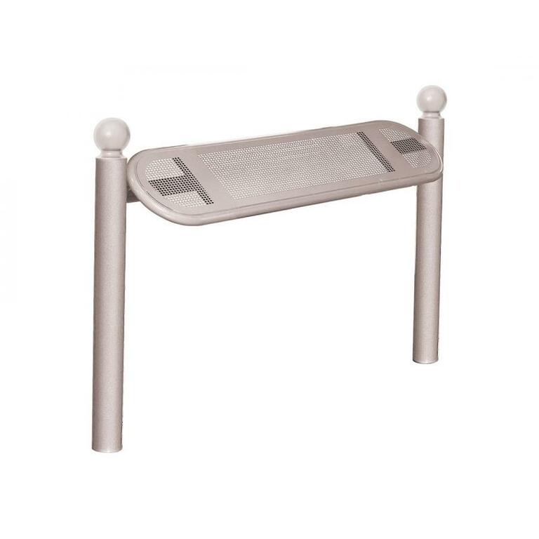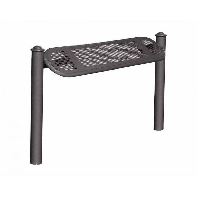Die Standlehne ist ein Modell, das durch seine geschwungene Formgebung perfekt mit den anderen Sitzmöglichkeiten der Estoril-Linie harmoniert. Hergestellt aus Stahlrohr mit einem Durchmesser von ø 76 mm, bietet sie eine stabile Struktur. Zur Auswahl stehen verschiedene Kopfmodelle, darunter City, Agora, Kugel oder Edelstahl, um unterschiedlichen ästhetischen Anforderungen gerecht zu werden. Der Sitzbereich besteht aus gelochtem Stahlblech mit einer Dicke von 2 mm, eingefasst in ein Stahlrohr mit ø 38 mm. Mit einer Länge von 1112 mm, einer Breite der Sitzfläche von 345 mm und einer Sitzhöhe von 747 mm bietet sie eine komfortable Sitzgelegenheit. Die Ausführung erfolgt in verzinktem Stahl, der in verschiedenen Farben nach unserer Farbpalette beschichtet ist. Die Montage erfolgt durch Einbetonieren, was eine stabile und dauerhafte Installation gewährleistet.