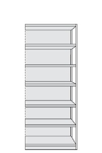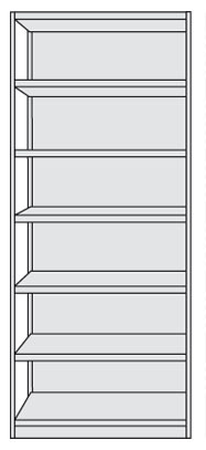 - Regalpfosten aus Kastenprofilen mit glatten Fronten. Sockelblende, Böden und Rückwand aus Stahlblech (Möbelstahl). Pulverbeschichtet, Farbe Lichtgrau RAL 7035