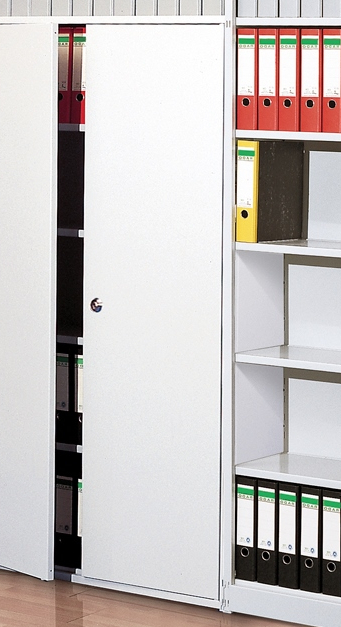Die Zwischenwände der Progress 500 Serie ermöglichen die Umwandlung von Regalfeldern in Regalwänden mit Rückwänden in komplette Einbauschränke mit Türen-Anbausätzen. Durch die Integration dieser Zwischenwände können ein oder mehrere Türen-Anbausätze nahtlos in die Regalwand eingefügt werden, wodurch der Stauraum effektiv genutzt und gleichzeitig eine ästhetische Integration erreicht wird.