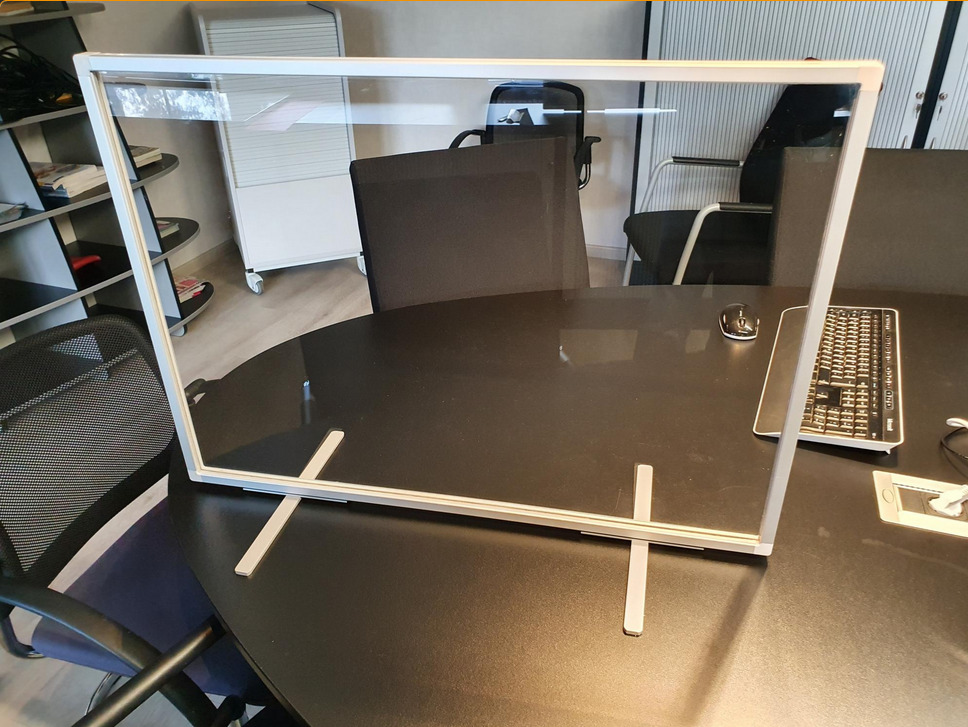 Unsere Schutzwände können einfach auf Tisch, Theke, oder sonstiges positioniert werden - fertig! Beliebig kombinierbar, kinderleicht auf- und abzubauen.