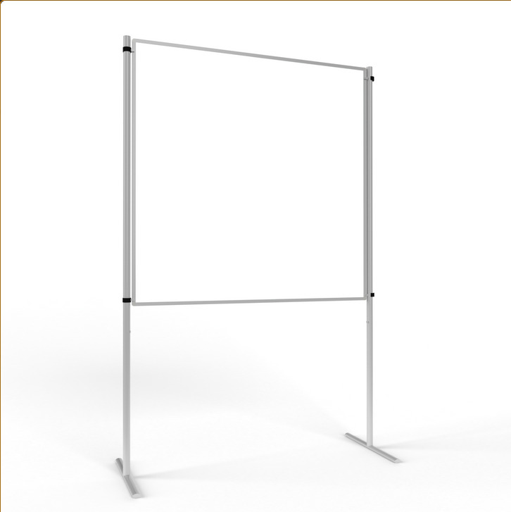 Unsere Schutzwände können einfach in die Stative gehängt werden, fertig! Beliebig kombinierbar, kinderleicht auf- und abzubauen, quer- und längsförmig verwendbar.