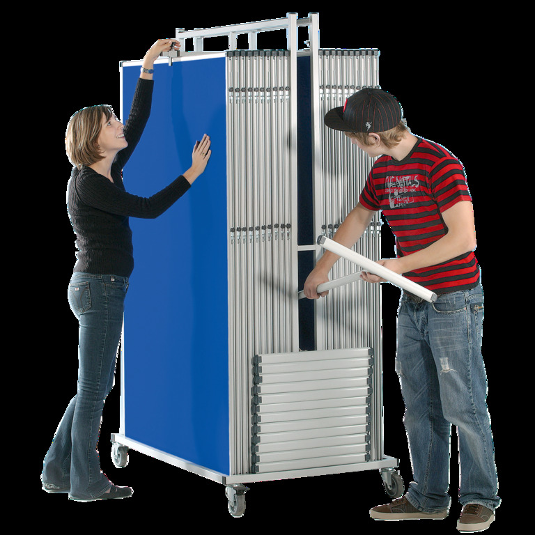 So schnell fixieren Sie die Tafeln auf dem Wagen. Diese Fixiervorrichtung ist in der Höhe verstellbar, so dass Tafeln vom Format 90 x 60 cm bis zum Format 180 x 100 cm transportiert und gelagert werden können.