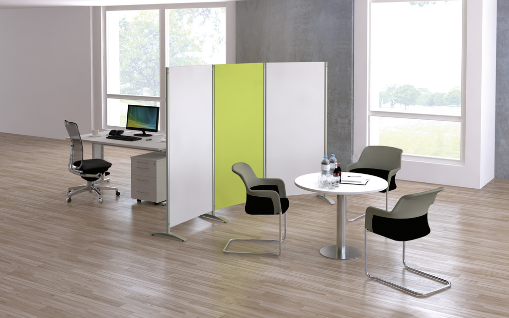 - Stellwände mit einem oder zwei Elementen sind mit feststellbaren Rollen ausstattbar.