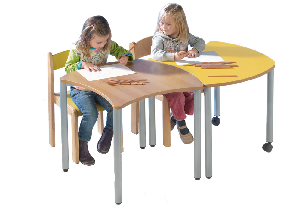 Der Swing-It Steely quadratische Wellentisch mit einer 19 mm starken, melaminharzbeschichteten Spanplatte in der umweltfreundlichen E1- Qualität hergestellt. Sie ist besonders leicht zu reinigen und kann natürlich feucht abgewischt werden. Die Tischplatte ist in fröhlichen Dekoren erhältlich, die Tischkante ist immer im Dekor Buche gehalten.