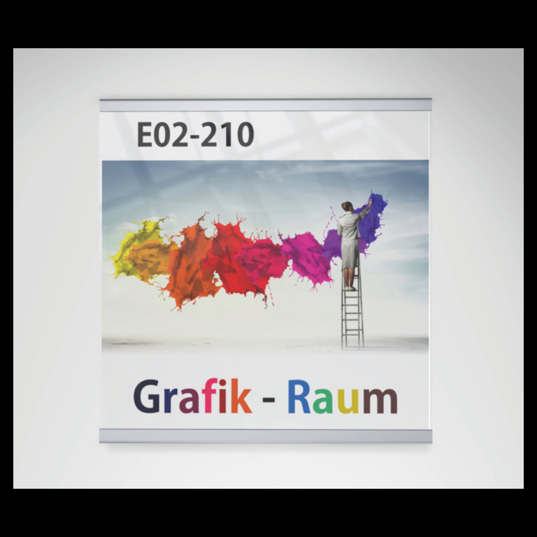 Die Basis für die anspruchsvollen Schilder der SlideFix-Serie bildet ein 3 mm starkes Aluminiumprofil, silbern eloxiert. In die innenliegende Nut des Profils wird seitlich eine sehr wertige, 8 mm starke Acrylplatte eingeschoben, die vorne bündig mit dem Profil abschließt und den Beschriftungseinleger abdeckt. Die Sicherung erfolgt über eine kaum sichtbare Madenschraube am unteren Profilrand. Die Schilderserie gibt es in drei verschiedenen Innenhöhen (150, 210 und 297 mm) mit jeweils verschiedenen Breiten. Die Montage erfolgt wahlweise mit Schrauben oder durch Verkleben. SlideFix ist eine moderne und extravagante Alternative zu einem erstaunlich günstigen Preis. Passende Beschriftungseinleger werden im letzten Kapitel „Beschriftungseinleger und Befestigungsmaterial“ angeboten.