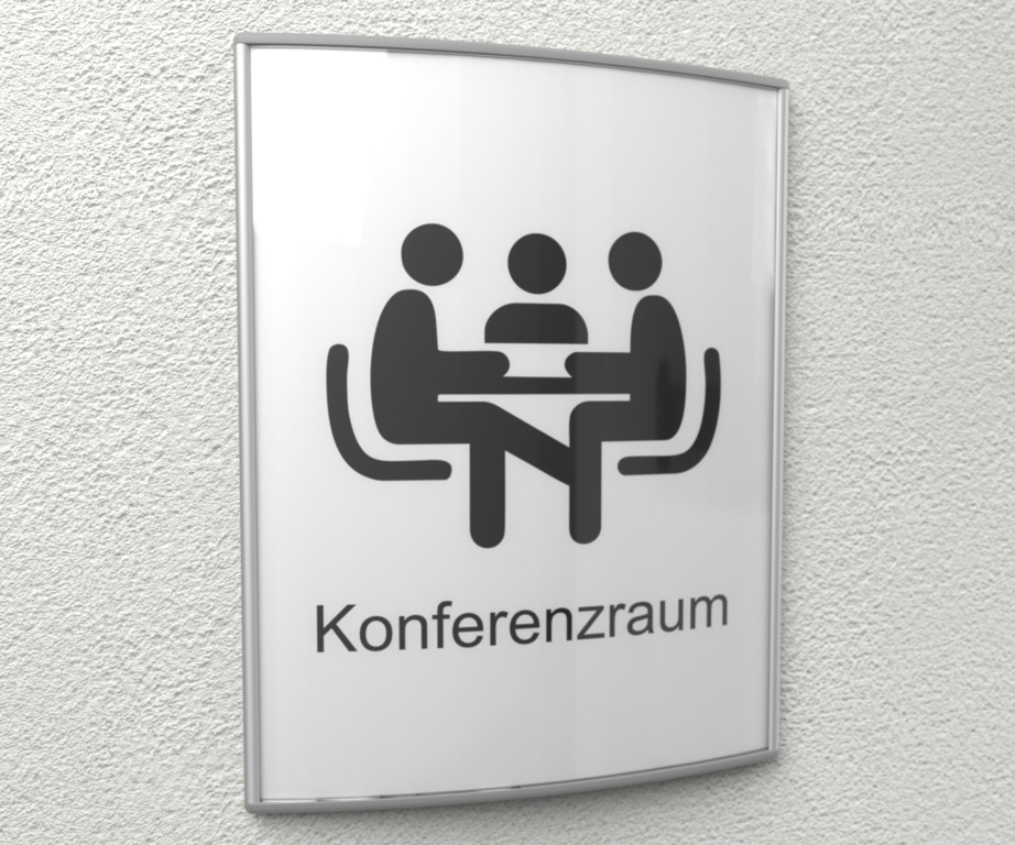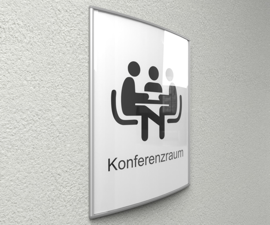 Das gewöblte Türschild Köln bestehend aus Aluminumstrangpressprofil (silber eloxiert) mit Abdeckkappen aus grauem Kunststoff. Die Antifreflexabdeckung aus Acryl wird durch Biegen in das Profil eingeschoben. Die Montage erfolgt mittels Schnellmontageplatte, Schrauben und Dübel.