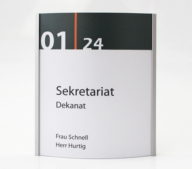 Mit seinem ansprechenden, gewölbten Design hebt sich das Türschild Kassel angenehm von den üblichen Standard-Türschildern ab und passt zu vielen Einrichtungsstilen. Durch die individuelle Beschriftungsmöglichkeit können problemlos auch farbliche Akzente wie firmeneigene Farben oder Logos eingebrachte werden.