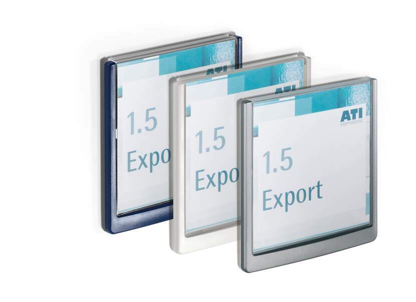 Türschild CLICK SIGN aus hochwertigem Kunststoff mit herausziehbarem Sichtfenster aus Acrylglas für bequemes Wechseln der Kartoneinlage. Zum Anschrauben, inkl. Kartoneinlage, Montageset und Aufbauanleitung.