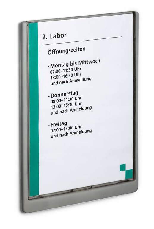 Türschild CLICK SIGN aus hochwertigem Kunststoff mit herausziehbarem Sichtfenster aus Acrylglas für bequemes Wechseln der Kartoneinlage. Zum Anschrauben, inkl. Kartoneinlage, Montageset und Aufbauanleitung.